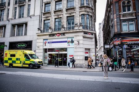 HSBC sign on a bank in London. Oxford street - main shopping street