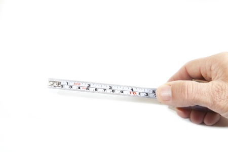 tape-measure in hand with white background