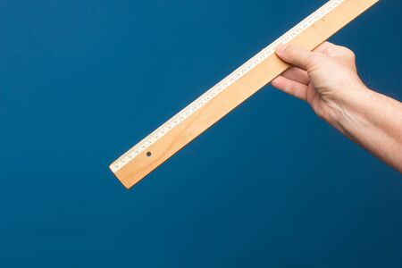 Wooden ruler in a person's hand, a classic vintage ruler of a lifetime.