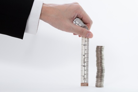a stack of coin is measured as 10 centimetre representing growth, wealth and return of investment