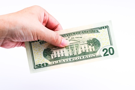 Hand with dollars on white background concept