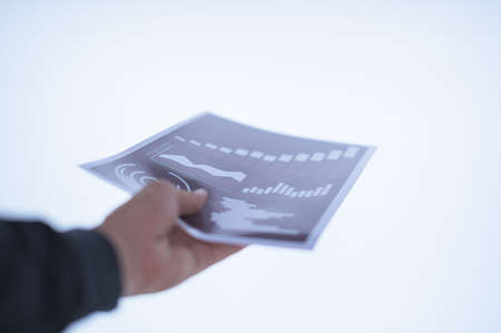 Businessman hand holding a document. Scenes white background.