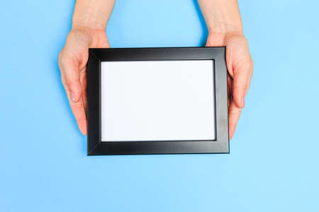 hands holding a blank frame. Copy space frame object