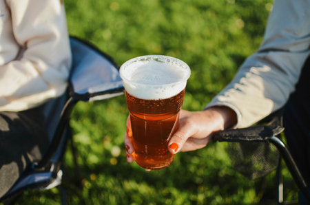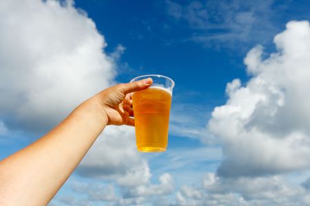 beer in a plastic glass in hand