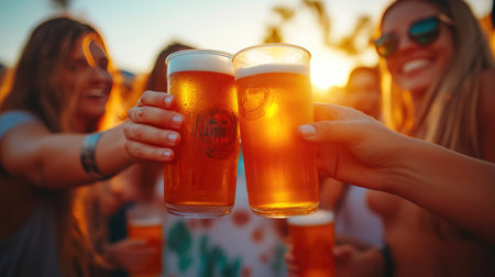 Joyful Friends Enjoying Sunset and Beer Together