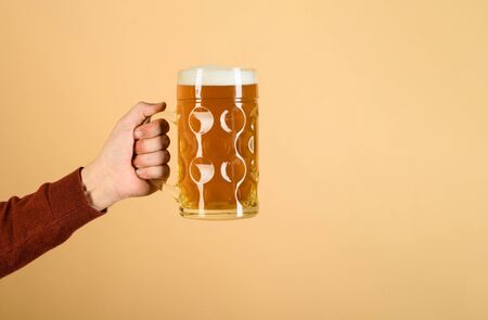 hand holding big glass of beer, close-ua