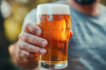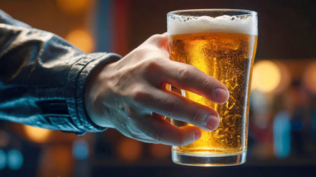 man hold a glass of beer generative ai