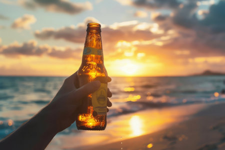 Person holding beer bottle. Suitable for advertisements and social events.