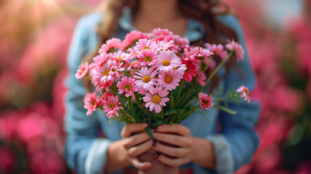 The Enchanting Beauty of a Person Grasping Vibrant Purple Petaled Flowers—AR 3:2
