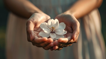 Blossoming Serenity: Capturing the Beauty of a Person Holding a White Flower in 3:2