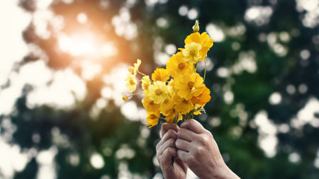 Vibrant Hand Captures Beauty: A Stunning Photo of Yellow Flowers - AR 3:2
