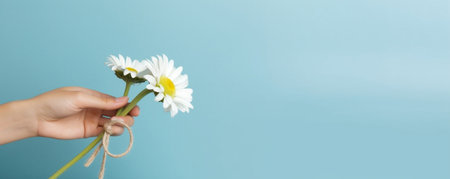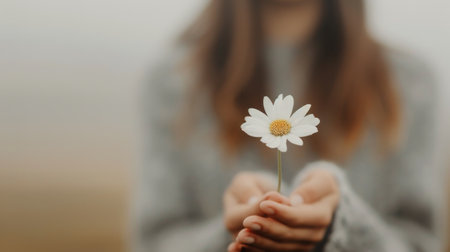 Generative AI : daisy flower kept in a hand spring season lifestyle concept