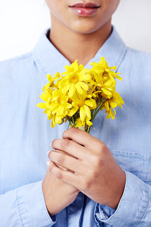 As delicate as these petals. Studio shot of an attractive young ethnic woman holding a bouquet of flowers.