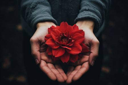 Capturing the Beauty: Person Embracing the Delicate Red-Petaled Flower in 3:2 Aspect Ratio