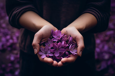 Captivating Beauty: Person Embracing the Serenity of a Purple Flower --ar 3:2