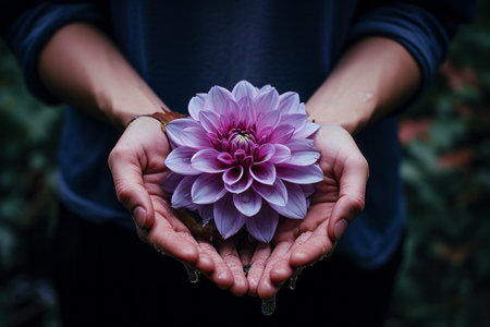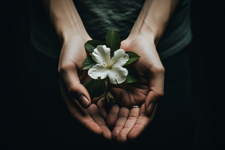 A close-up of hands holding a delicate flower, symbolizing the delicate nature of mental health and the importance of nurturing oneself with kindness and patience.