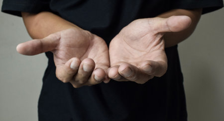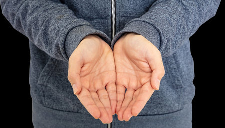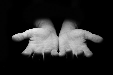 A close-up of open hands presented forward, as if offering or requesting something, with a blurred background adding focus.