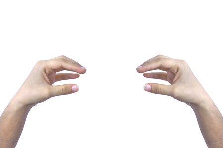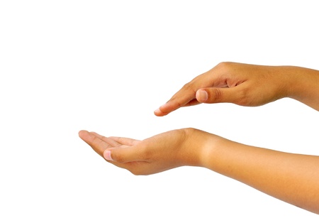 Empty hand showing ,Beautiful woman hand holding isolated on white background