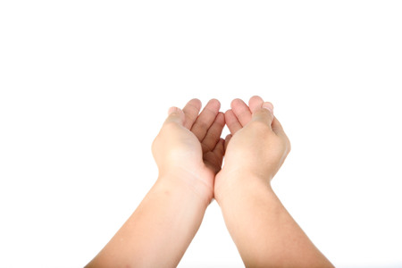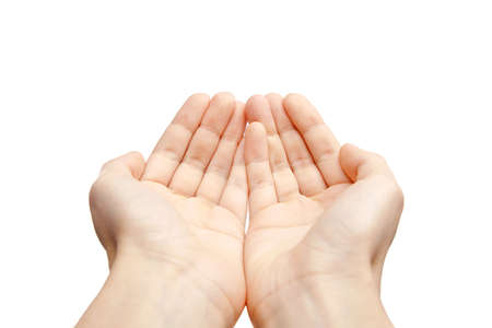 Woman hand pleading or open the palm of the hand on white isolated background.