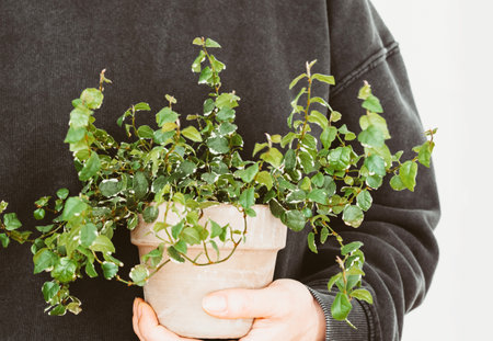 Growing Green: A Person Embracing Nature with a Rooted Plant in a Brown Pot