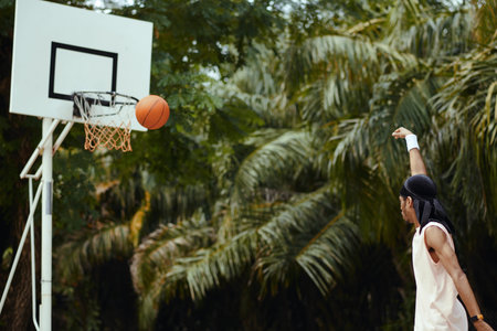 professional basketball player training outdoor. guy has sport motivation. sport and hobby