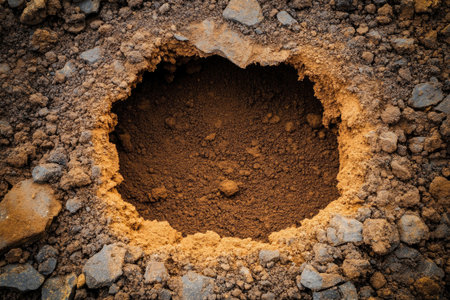 Close up of a hole in the ground with a hole in it