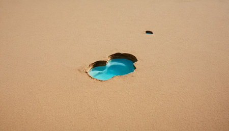 A hole in the sand with a blue water in the middle.