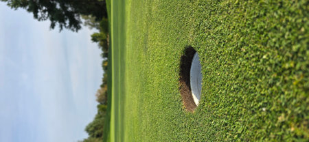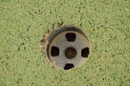 Golf course. Golf ball hole.