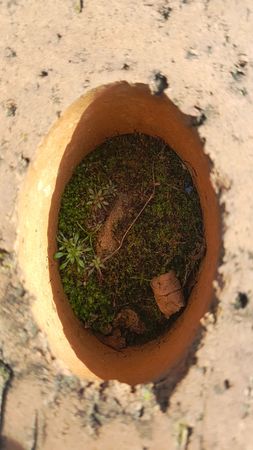 Hole in the ground with green grass. Close up shot.
