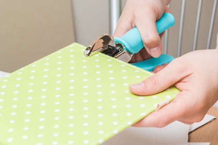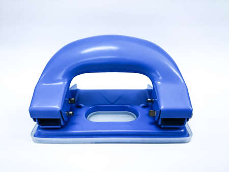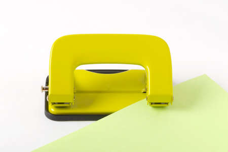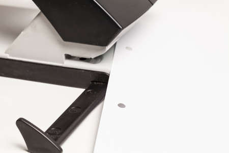 Hole punch and stapler on the office desk. Office tools. Copy space. Close-up