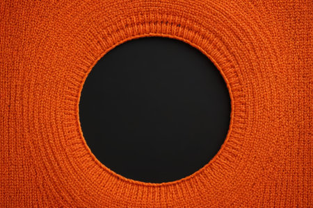 Close up of the neckline of orange knitted clothing
