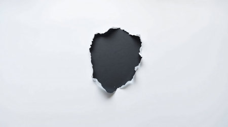 Breakthrough paper hole on white