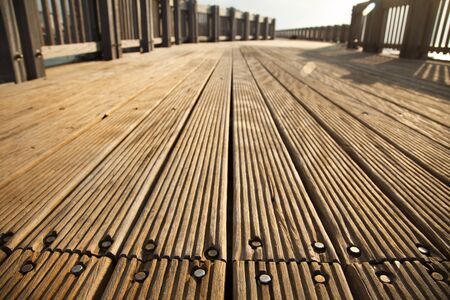 Hard wood deck with open space. Wood grain and natural texture.