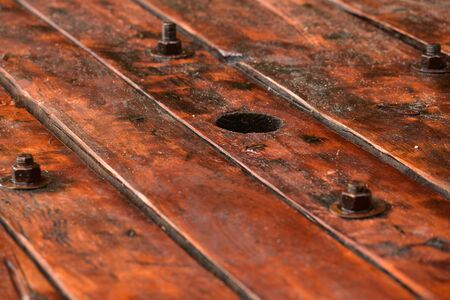 Close view of the wooden planks nailed down