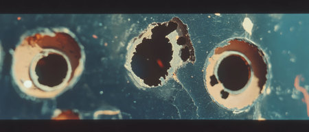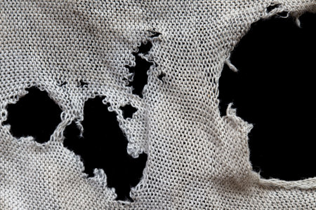 Details of damaged old film surface showcasing torn sprocket holes and perforations