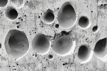Rough concrete texture with visible air pockets, showcasing natural patterns and irregularities in a weathered surface