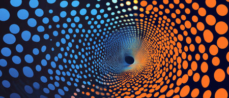 Spiral halftone dot pattern in blue and orange for creative design backgrounds