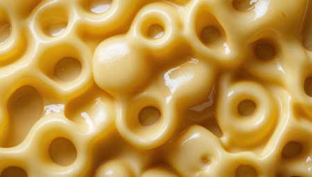 Close-up view of Swiss cheese showing its distinct holes and creamy texture, emphasizing its natural porous structure