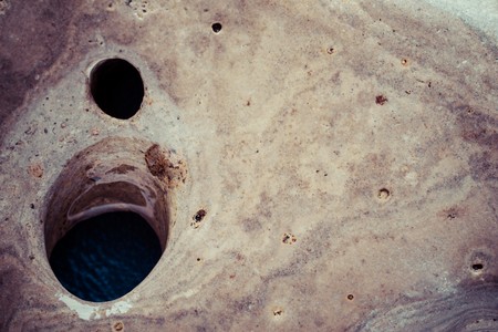 closeup of texture of a stone surface with two holes for the natural textured background or for wallpaper