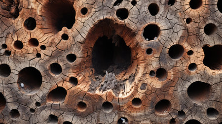 This close-up image showcases a remarkable natural stone texture featuring intriguing holes and cavities, highlighting unique patterns created by erosion over time.