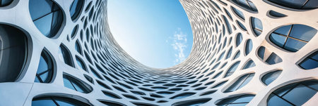 Modern Futuristic Building Design with Honeycomb Pattern, Interior Architecture Abstract Detail