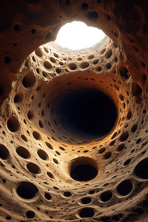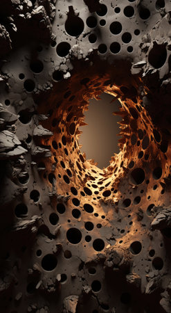 AI Generated. Abstract porous surface with a multitude of holes creating a complex texture