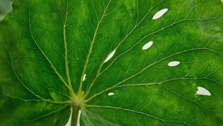 An AI generated illustration of a vibrant green leaf with intricate cut-outs, perfect for wallpapers