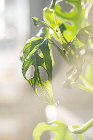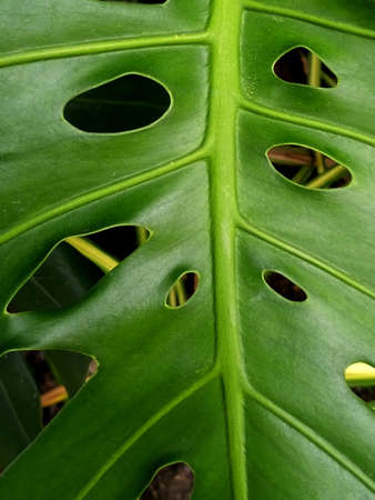 Backlit detail of the leaf of the tropical plant Monstera Deliciosa, also called rib of Adam. Lanzarote