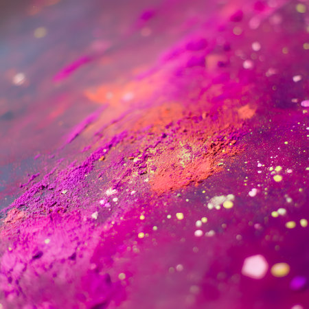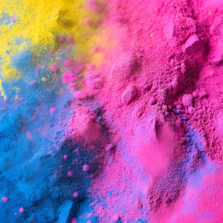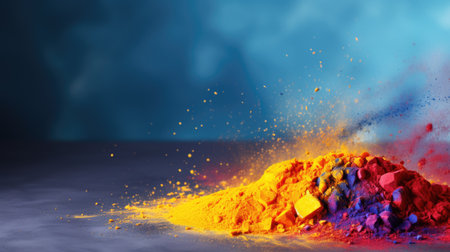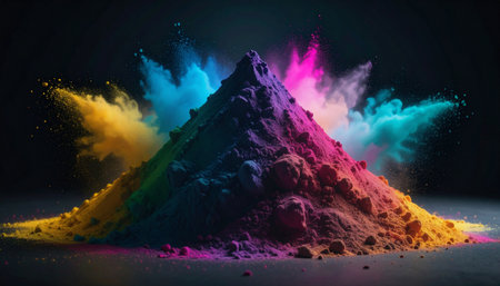 Macro close up of vibrant colorful holi powder mound with detailed texture and particles, realistic festival concept