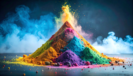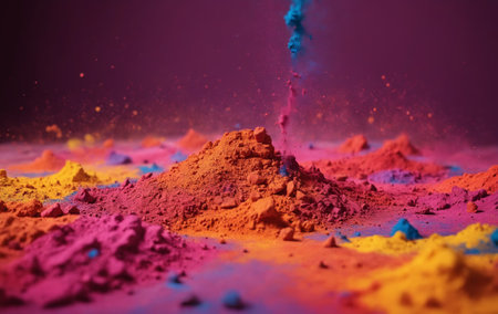 vibrant colored smoke clouds erupting from piles of powder concept of art design celebration