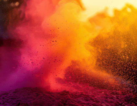Colorful powder bursts celebrate vibrant festival of colors in a joyful display in nature