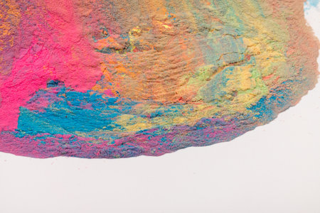 Holi powder dust gently spread across a flat surface, illuminated by natural light for a serene and artistic vibe.