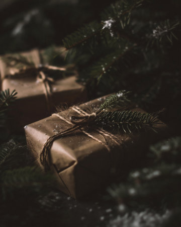 Colorful ornaments pine cones and wrapped gifts create a lively New Year atmosphere. This scene captures the spirit of holiday cheer and excitement.