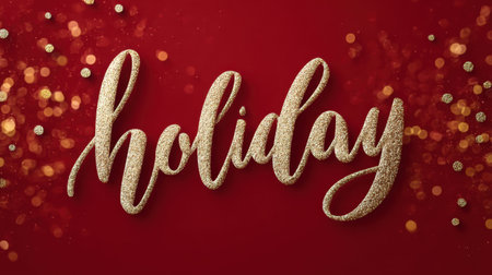 A striking holiday decoration featuring elegant golden glitter text against a vibrant red background, perfect for festive themes and celebrations.